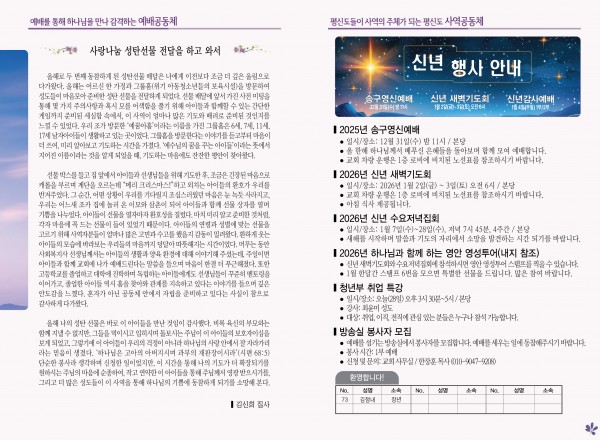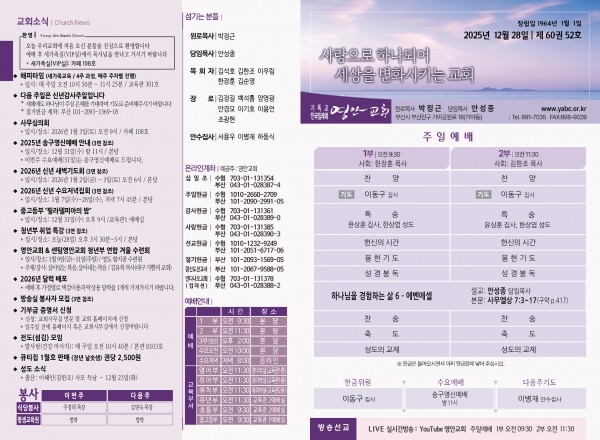 2025년 12월 28일 주보 페이지 정보 작성자 관리지기 작성일25-12-27 10:20 조회879회 댓글0건 관련링크 목록 본문 2025년 12월 28일 주보 댓글목록 등록된 댓글이 없습니다. 목록