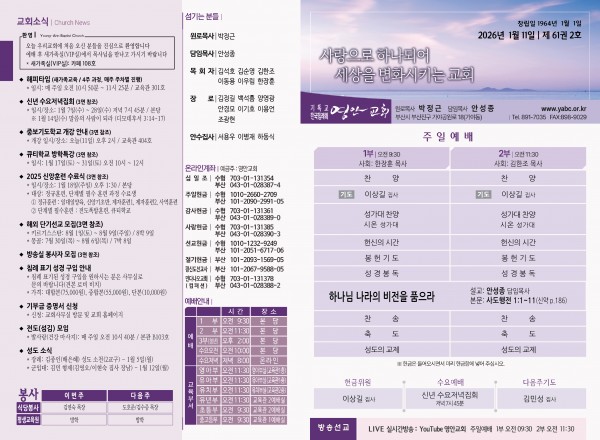2026년 1월 11일 주보 페이지 정보 작성자 관리지기 작성일26-01-10 10:28 조회746회 댓글0건 관련링크 목록 본문 2026년 1월 11일 주보 댓글목록 등록된 댓글이 없습니다. 목록