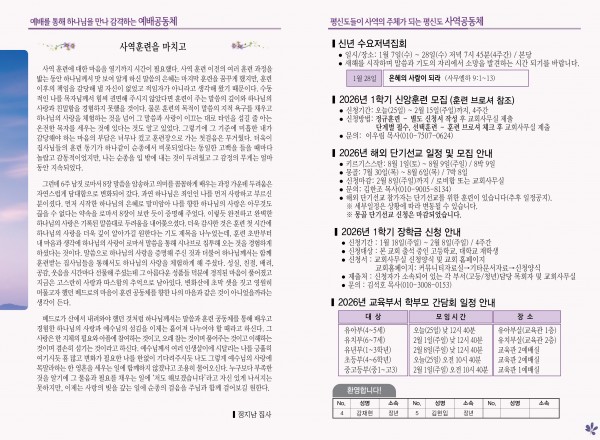2026년 1월 25일 주보 페이지 정보 작성자 관리지기 작성일26-01-24 10:35 조회538회 댓글0건 관련링크 목록 본문 2026년 1월 25일 주보 댓글목록 등록된 댓글이 없습니다. 목록
