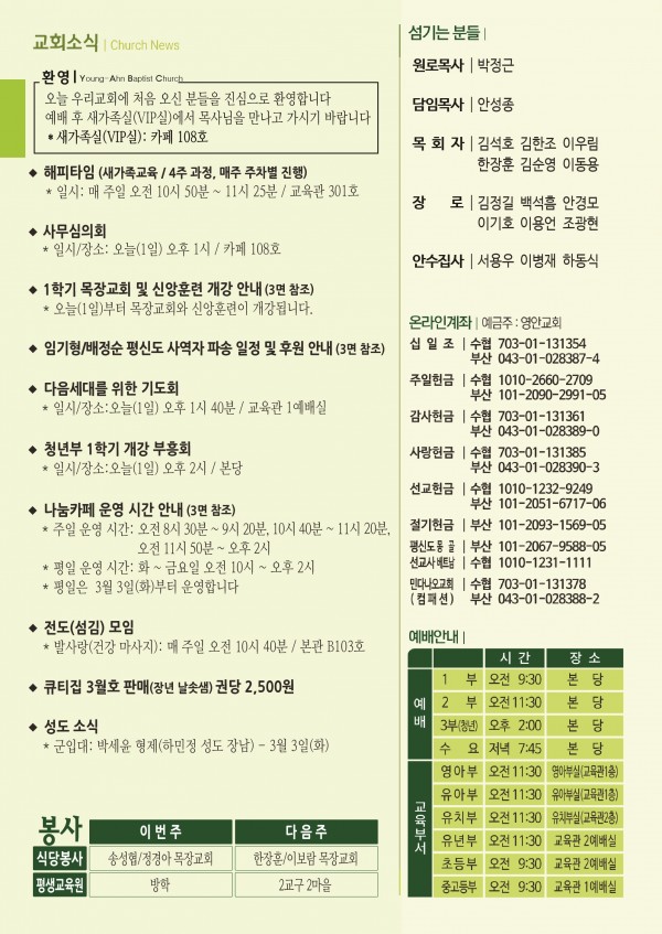 2026년 3월 1일 주보 페이지 정보 작성자 관리지기 작성일26-02-28 10:17 조회277회 댓글0건 관련링크 목록 본문 2026년 3월 1일 주보 댓글목록 등록된 댓글이 없습니다. 목록