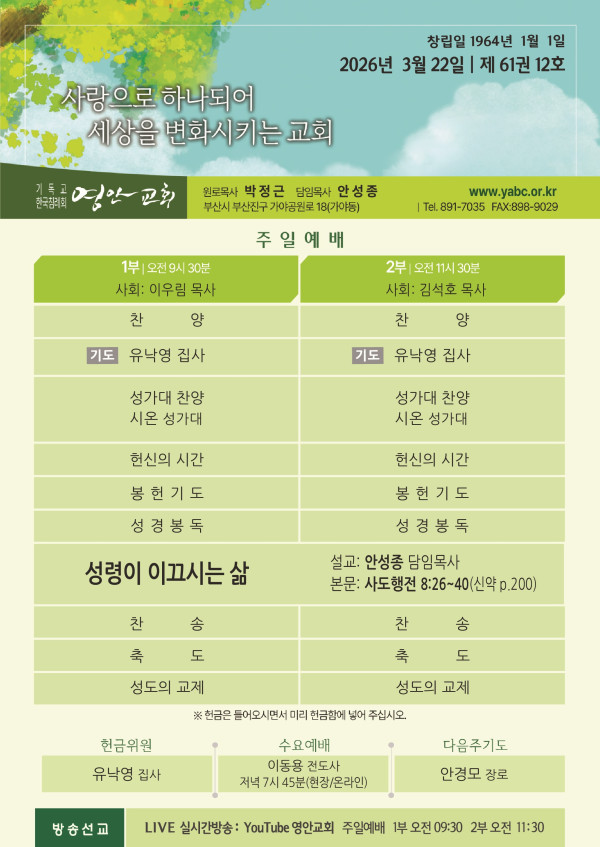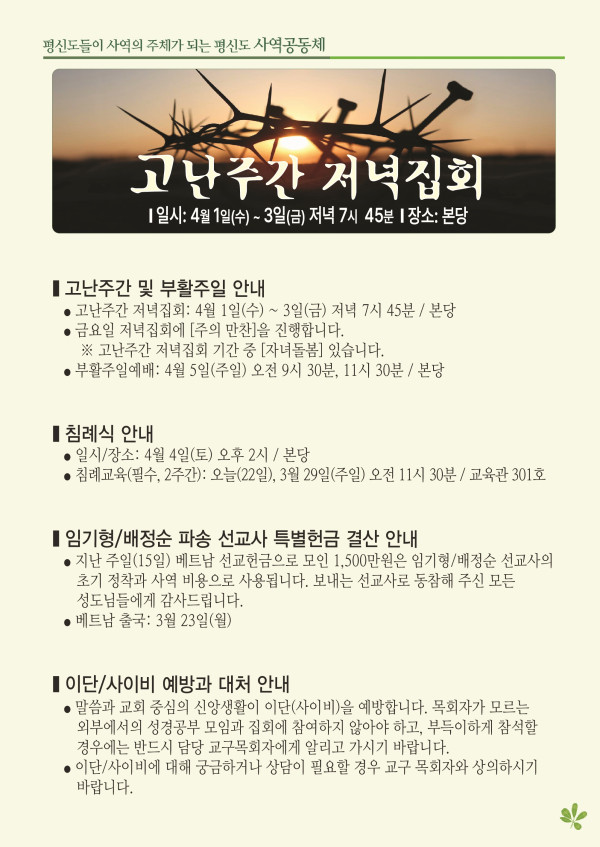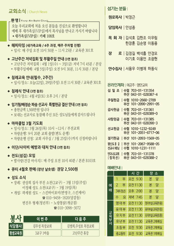2026년 3월 22일 주보 페이지 정보 작성자 관리지기 작성일26-03-21 10:38 조회1,039회 댓글0건 관련링크 목록 본문 2026년 3월 22일 주보 댓글목록 등록된 댓글이 없습니다. 목록