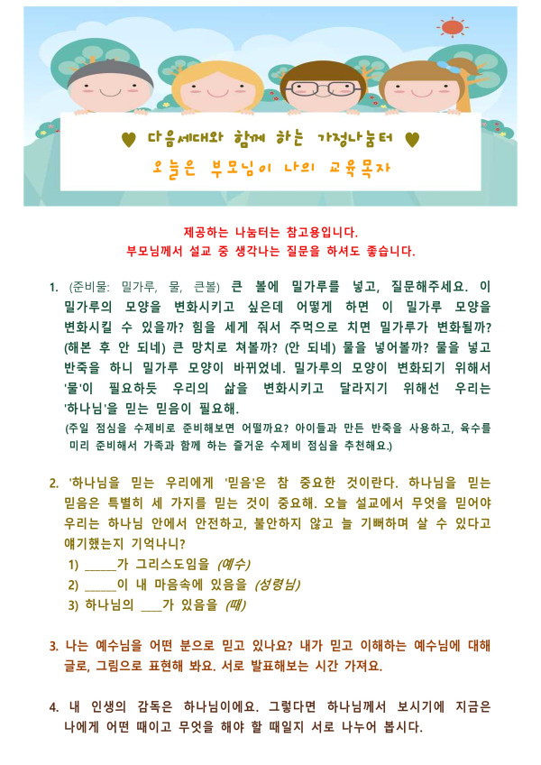 2020년 3월 15일 다음세대와 함께하는 가정나눔터