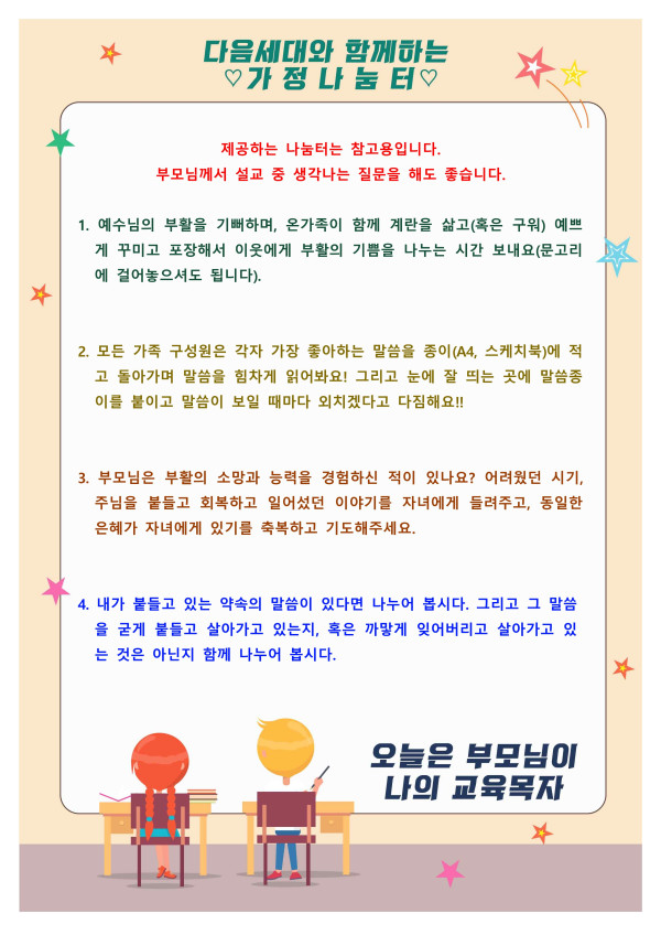 2020년 4월 12일 다음세대와 함께하는 가정나눔터