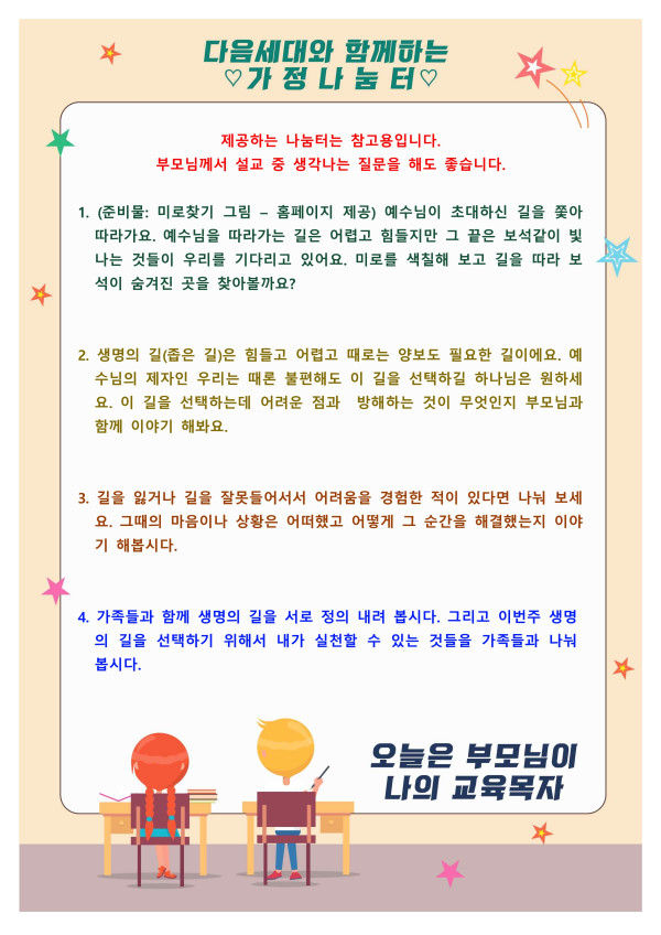 2020년 4월 19일 다음세대와 함께하는 가정나눔터(미로 그림 포함)