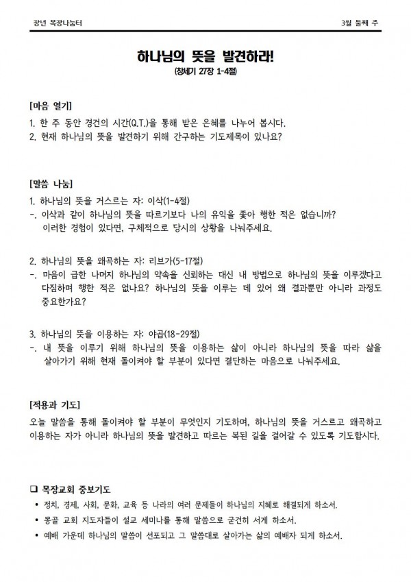 220312_ 목장나눔터 기도제목 목원용_센텀.hwp