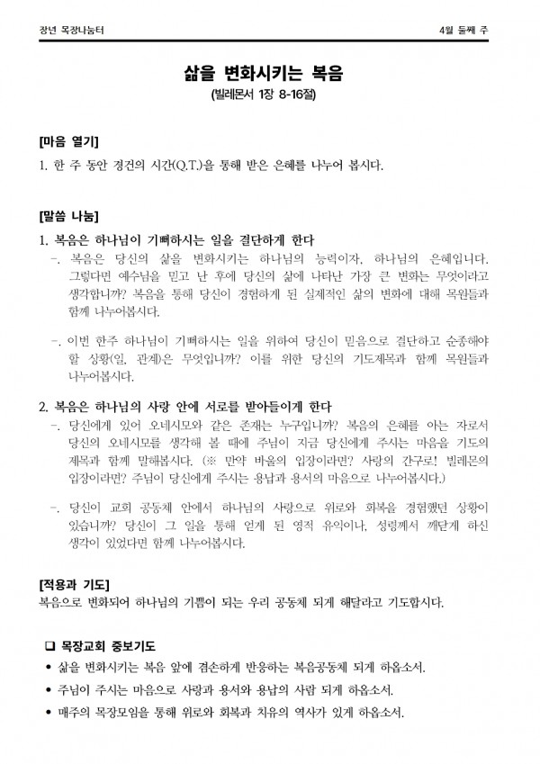 2024년 4월 14일 나눔터(목원용) 가야예배당