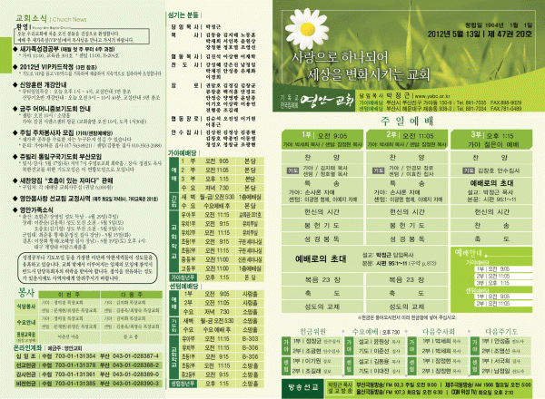 2012년 5월 13일 주보 페이지 정보 작성자 yabc 작성일12-05-12 00:00 조회9,903회 댓글0건 관련링크 목록 본문 2012년 5월 13일 주보 댓글목록 등록된 댓글이 없습니다. 목록