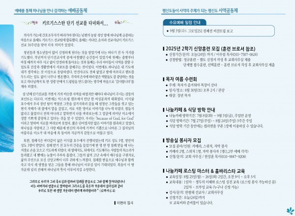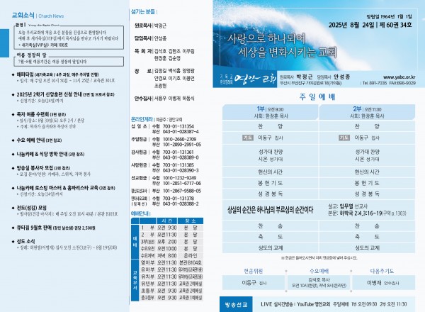 2025년 8월 24일 주보 페이지 정보 작성자 관리지기 작성일25-08-23 10:18 조회812회 댓글0건 관련링크 목록 본문 2025년 8월 24일 주보 댓글목록 등록된 댓글이 없습니다. 목록